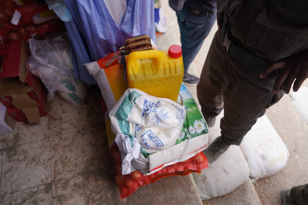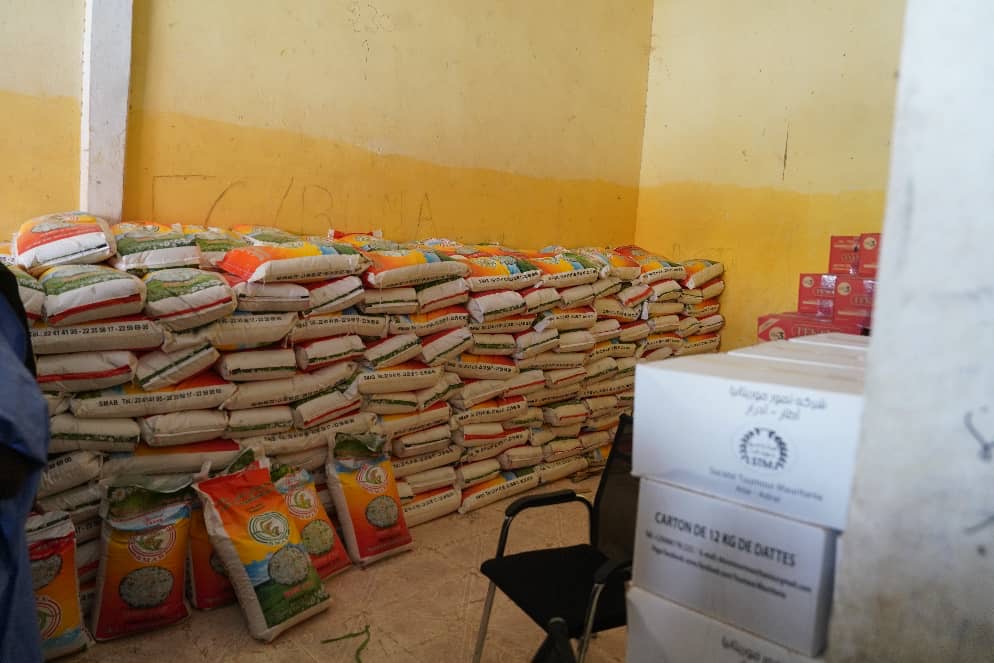 والتوزيعات الغذائية المجانية والتي ستستفيد منها أكثر من 18400 أسرة في نواكشوط، والمدن القديمة في ولاتة وتيشيت وشنقيط ووادان وچَوَلْ، وذلك من خلال توفير سلات غذائية تشمل مواد القمح والأرز والسكر والمعجونات الغذائية وزيت الطهي والتمور.