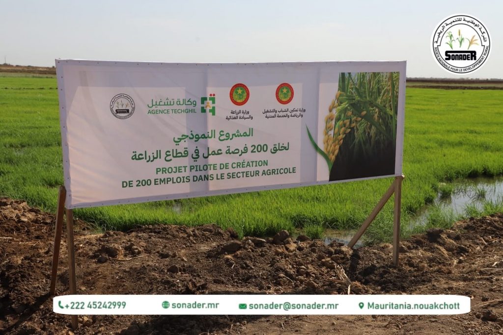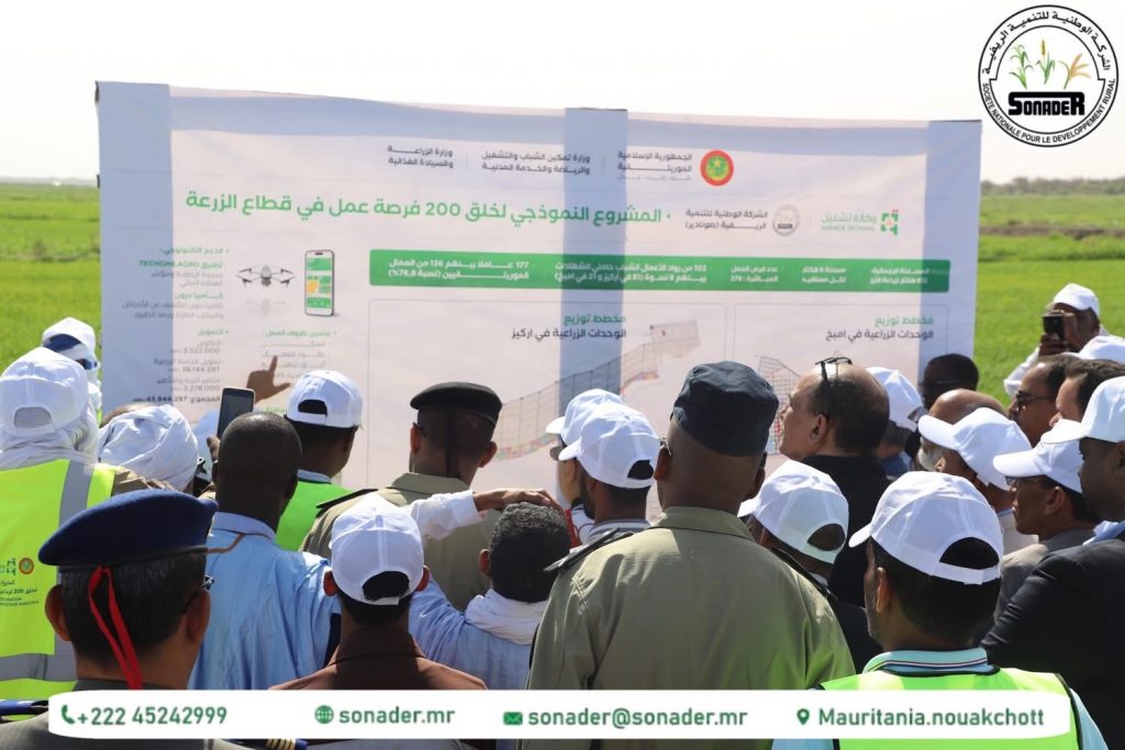 أشادة معالي وزراء: الزراعة والسيادة الغذائية السيد أمم بيباته، التمكين والشباب والتشغيل محمد عبد الله لولي، بأهمية المشروع النموذجي الذي تنفذه الشركة الوطنية للتنمية الريفية (صونادير) على مستوى روصو واركيز والهادف إلى خلق 200 فرصة عمل في القطاع الزراعي.