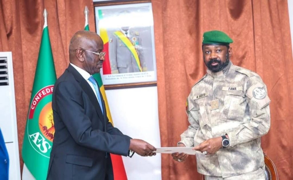 باماكو_ سلم معالي وزير الشؤون الخارجية والتعاون الإفريقي والموريتانيين في الخارج السيد محمد سالم ولد مرزوك، اليوم الخميس رسالة خطية من فخامة رئيس الجمهورية السيد محمد ولد الشيخ الغزواني، لنظيره فخامة السيد آسيمي كويتا رئيس المجلس الانتقالي بجمهورية مالي.