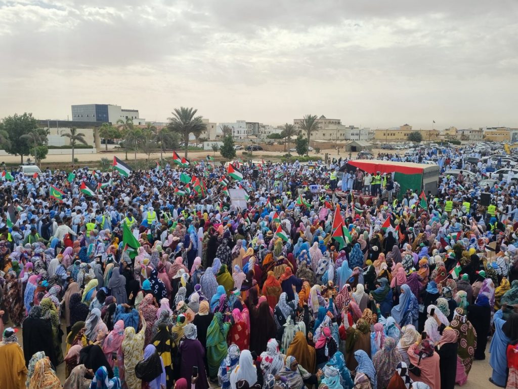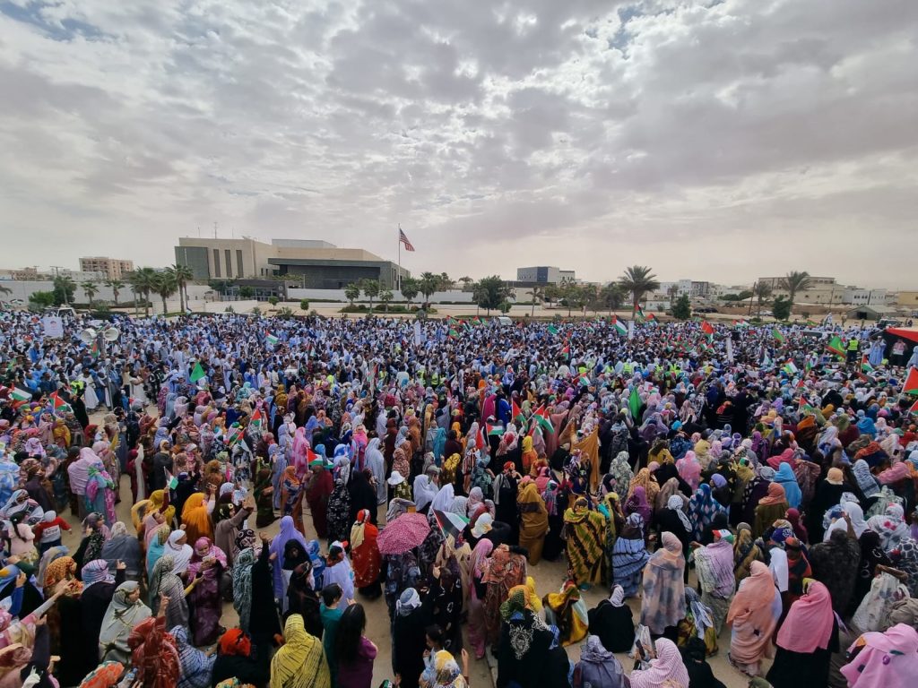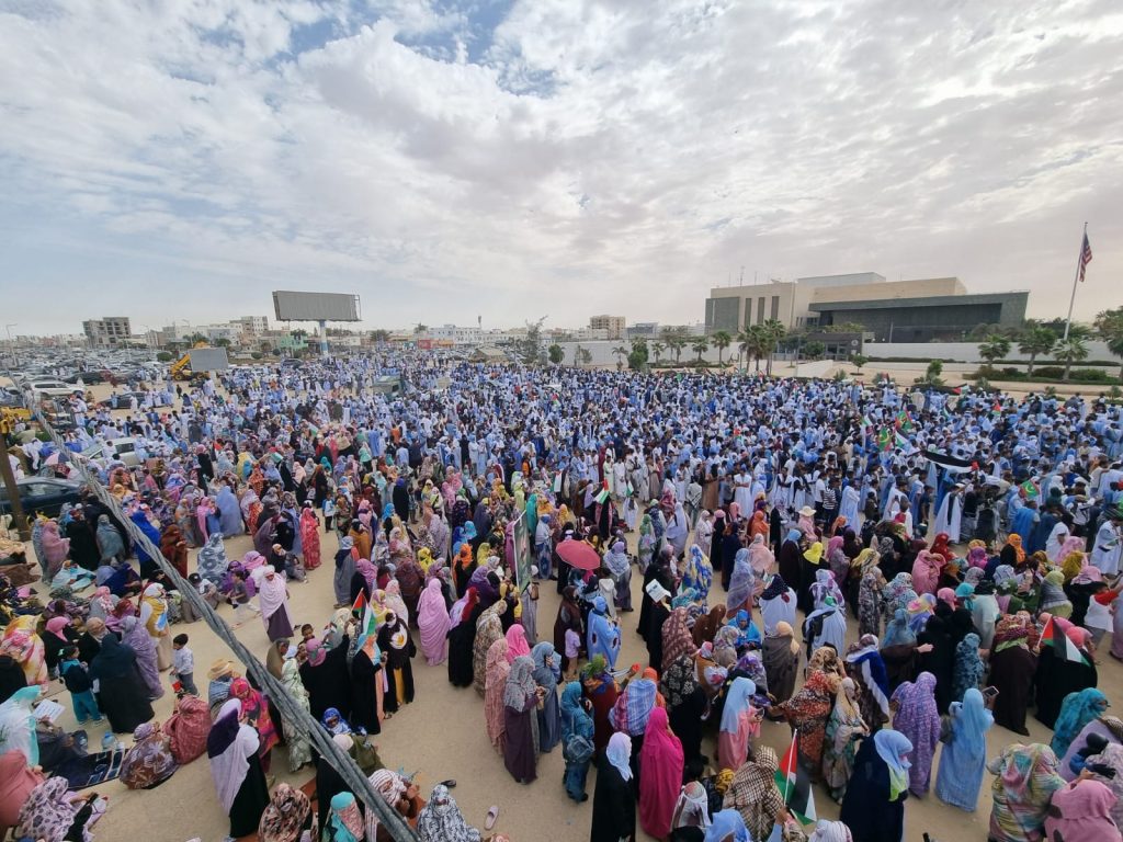نظم عدد من سكان العاصمة نواكشوط، اليوم الاثنين، وقفة أمام سفارة الولايات المتحدة، للتضامن مع سكان غزة.