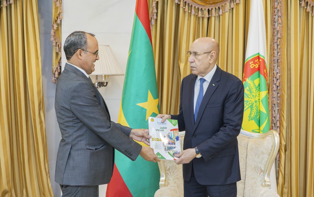 تسلم رئيس الجمهورية، السيد محمد ولد الغزواني، اليوم الأربعاء بالقصر الرئاسي في نواكشوط، التقرير السنوي للسلطة العليا للصحافة والسمعيات البصرية، خلال استقبال خص به رئيس الجمهورية، اليوم رئيس السلطة العليا للصحافة والسمعيات البصرية، السيد محمد عبد الله ولد لحبيب.