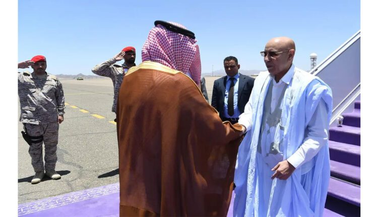 وكان في استقبال رئيس الجمهورية لدى وصوله مطار الأمير محمد بن عبد العزيز الدولي، وكيل إمارة منطقة المدينة المنورة عبد المحسن بن نايف بن حميد، ومدير مكتب المراسم الملكية بالمنطقة إبراهيم بن عبد الله برّي، وسفير موريتانيا في المملكة العربية السعودية سعادة السيد المختار ولد داهي، وعدد من المسؤولين.