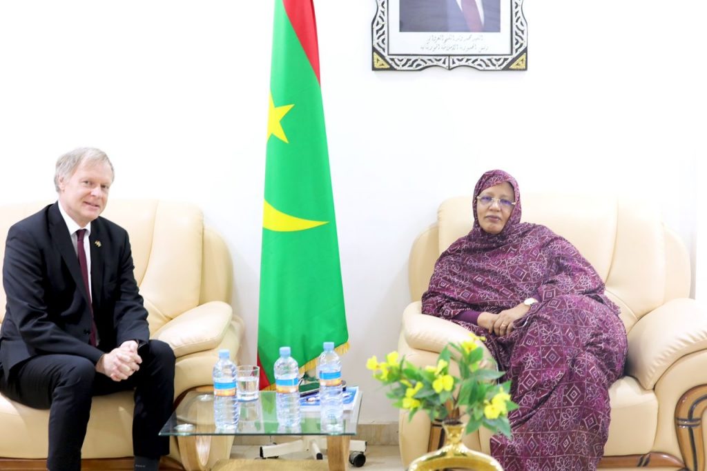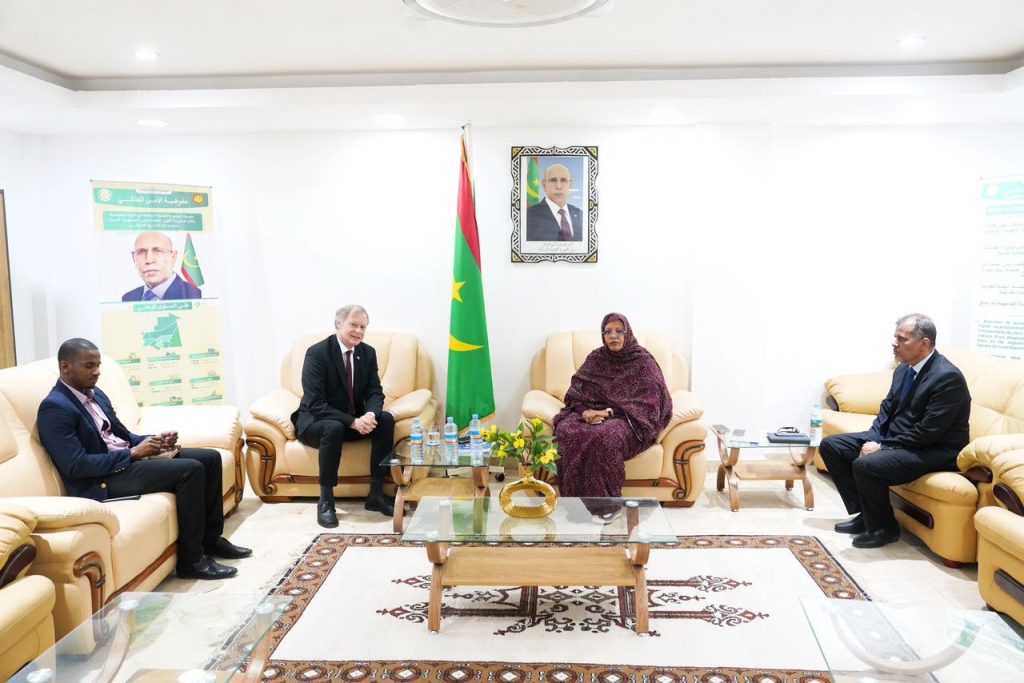 أجرت معالي مفوضة الأمن الغذائي السيدة فاطمة بنت خطري، اليوم الأربعاء بمكتبها في نواكشوط، مباحثات مع سعادة السيد فلوريان ريندل، سفير جمهورية ألمانيا الاتحادية المعتمد لدى بلادنا.