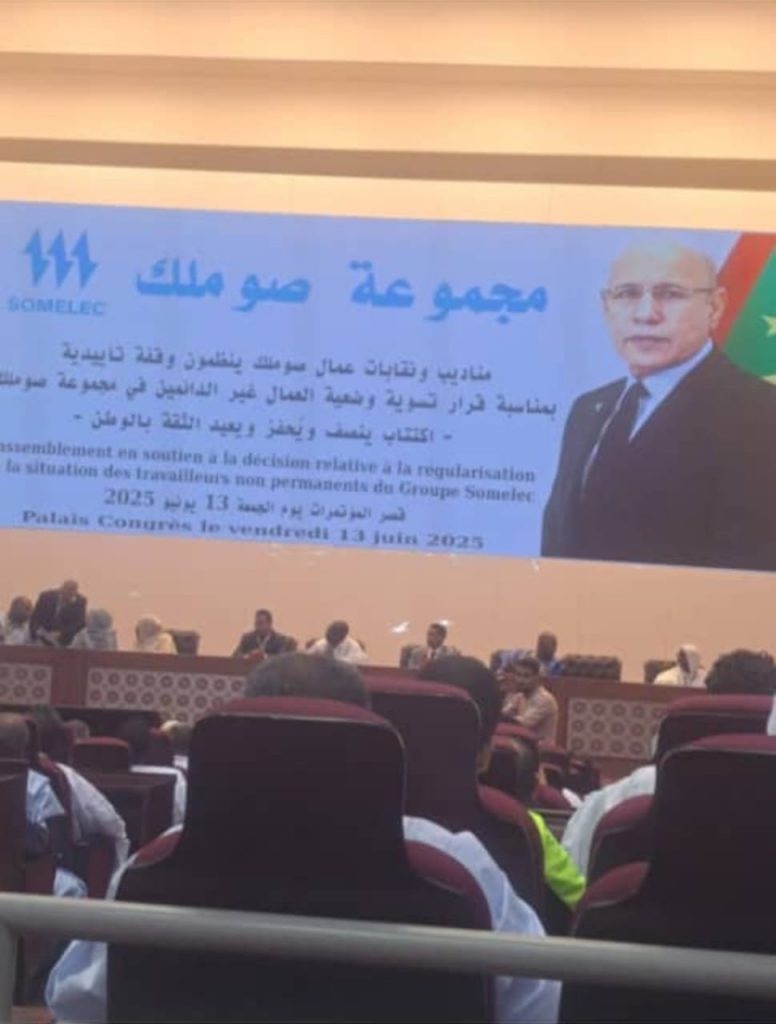 و قد أصدر مناديب نقابات عمال مجموعة صوملك بيانا عبروا من خلاله عن سرورهم بهذا القرار الصائب معربين لفخامته و لحكومة معالي الوزير الأول السيد المختار ولد اجاي .