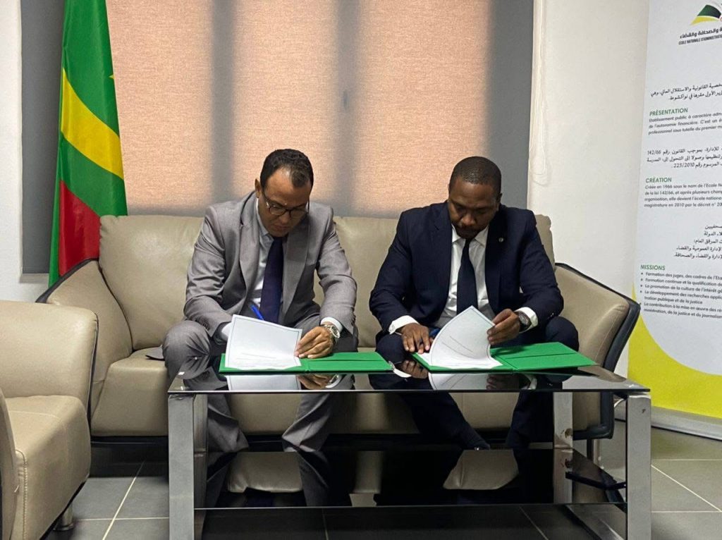 وقع المدير العام للمدرسة الوطنية للإدارة والصحافة والقضاء، الدكتور محمد يحي ولد السعيد، مع ممثل المنظمة الدولية للهجرة في نواكشوط، إدريسا سومباري، اتفاقية للتعاون تهدف إلى تعزيز التنسيق بين المؤسستين في مجالات التكوين والتأطير.