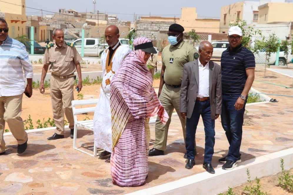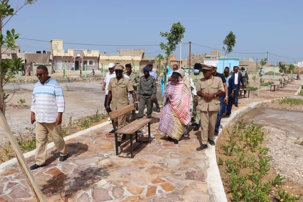 من الزيارة التفقدية التي قامت بها معالي وزيرة البيئة و التنمية المستدامة السيدة “مسعودة بحام محمد لغظف”لبعض ورشات مكونة البيئة و تحسين الوجه الحضري للمدينة في إطار البرنامج الاستعجالي لمدينة انواكشوط.