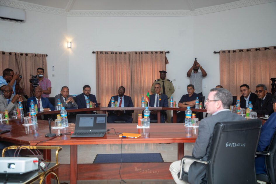وترأس معالي الوزير اجتماعا بأطر الميناء بحضور المدير العام للميناء السيد سيدي محمد محم، أوضح فيه الأهمية الكبيرة والحيوية للميناء بالنسبة للتنمية الاقتصادية والاجتماعية للبلد.
