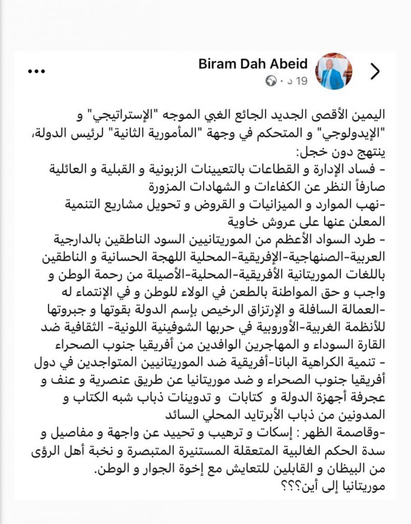 موريتانيا إلى أين؟ بقلم النائب برام الداه اعبيد 3 ساعات مضت Print PDF eBook كتب رئيس حركة إيرا النائب البرلماني برام الداه اعبيد على صفحته على الفبسبوك ما يلي : شاركها Facebook Twitter Stumbleupon LinkedIn Pinterest