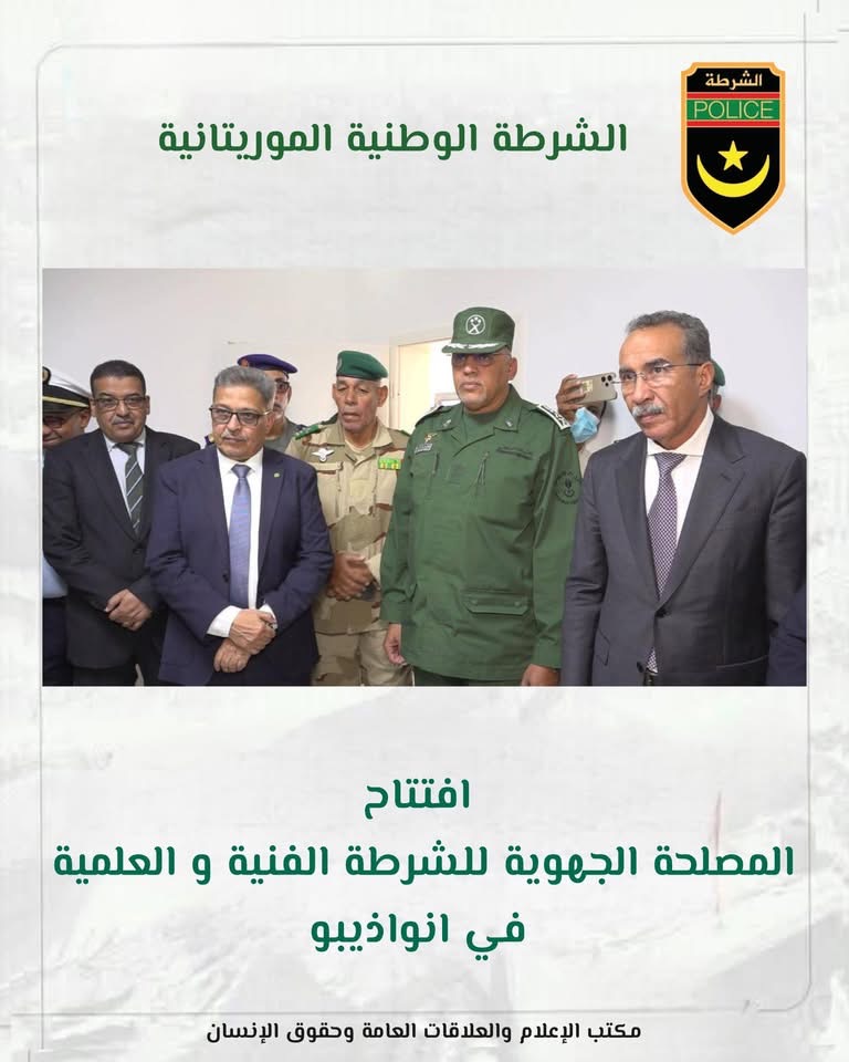 أشرف الفريق المدير العام للأمن الوطني محمد لحريطاني يوم الاثنين 17 نوفمبر 2025، افتتاح المصلحة الجهوية للشرطة الفنية و العلمية في انواذيبو.