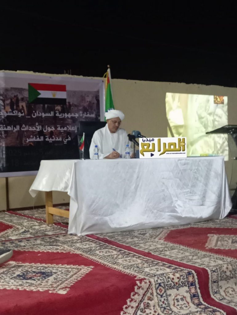 استعرض القائم بأعمال السفارة السودانية في موريتانيا، سعادة السفير عبد الحميد بشرى، تطورات الأحداث التي شهدها مدينة الفاشر خلال الأيام الأخيرة، على وقع الانتهاكات الوحشية والعمليات القذرة التي شهدتها المدينة بعد دخول ميليشات الدعم السريع إليها في 26 من شهر أكتوبر المنصرم، بعد حصار خانق دام أكثر من سنتين.