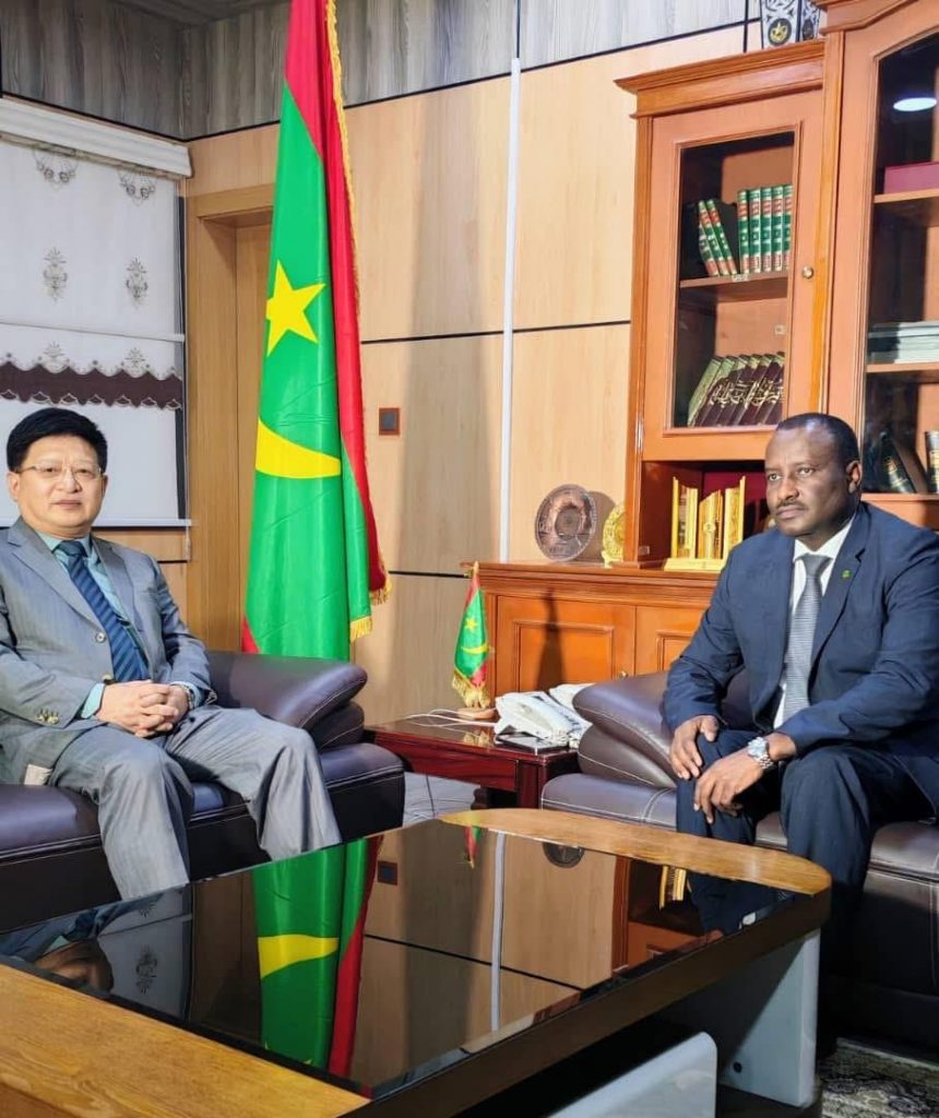 عقد معالي وزير العدل، محمد ولد اسويدات، صباح اليوم الاثنين اجتماعا في نواكشوط مع السفير الصيني في موريتانيا، تشانغ زونغ دونغ، خصص لبحث فرص التعاون بين البلدين في المجال القضائي.