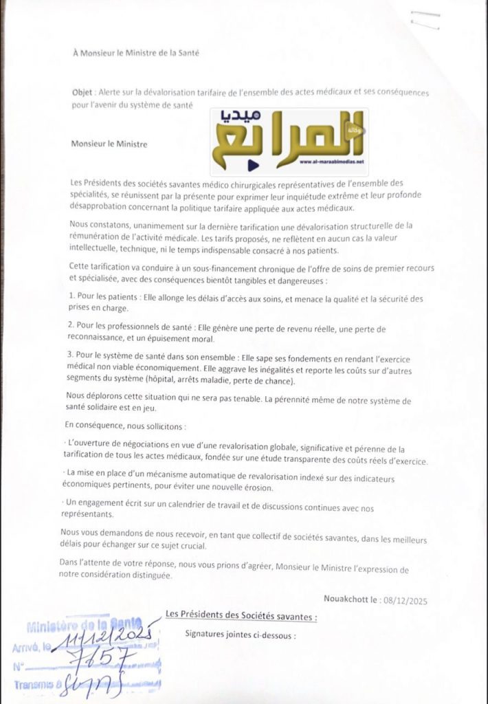 عبّر رؤساء الجمعيات العلمية الطبية-الجراحية الموريتانية، الممثّلة لمجمل التخصصات، عن بالغ قلقهم وعمق استيائهم من السياسة التعريفية المطبقة على الأعمال الطبية.