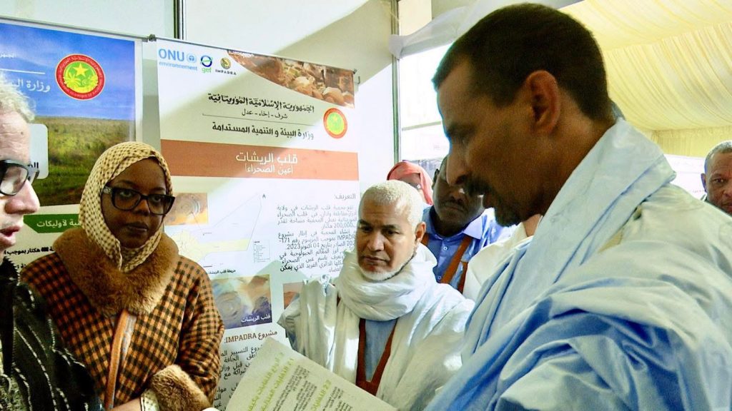 تفقد معالي وزير الثقافة الحسين ولد امدو، رفقة معالي وزير الشؤون الإسلامية الفضيلي ولد سيداتي السبت 20 ديسمبر 2025، جناح وزارة البيئة والتنمية المستدامة، ضمن المعارض المنظمة على هامش النسخة الرابعة عشرة من مهرجان مدائن التراث، المقامة هذا العام بمدينة وادان.