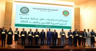 استضافت موريتانيا الخميس 31 أكتوبر 2024 بتنظيم من وزارة العدل حفْلَ تسليم جائزة جامعة الدول العربية للقانون والقضاء، وهي جائزة أنشأها مجلس وزراء العدل العرب تشجيعا للبحث العلمي في مجال القانون والقضاء..شَكَّلَ قبول موريتانيا استضافة وتنظيم هذا الحفل قرارا موفقا يعكس تفكيرا رفيعا وحسا وطنيا كبيرا، حقق أهدافا عدة مهمة …