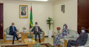 أجرى معالي الوزير الأول السيد محمد ولد بلال، صباح اليوم الجمعة بمكتبه بالوزارة الأولى في نواكشوط، مباحثات مع سفير المملكة الإسبانية المعتمد لدى بلادنا سعادة السيد خوسيوس سانتوس آكوادو. وتناولت المباحثات علاقات التعاون القائمة بين البلدين وسبل تعزيزها وتطويرها. جرى اللقاء بحضور السيدة عيشه فال بنت فرجس، مديرة ديوان الوزير …