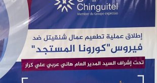 أطلقت الشركة الموريتانية السودانية للاتصالات “شنقيتل” حملة لتطعيم عمالها باللقاح المضاد لفيروس كورونا المستجد. وأوضحت الشركة في إيجاز صحفي أن الحملة ستشمل جميع العمال من إداريين وفنيين. وأضافت: “تعد هذه مبادرة من الشركة للمساهمة في حملة التلقيح الوطنية التي أطلقتها وزارة الصحة، وبدأت برئيس الجمهورية السيد محمد ولد الشيخ الغزواني …