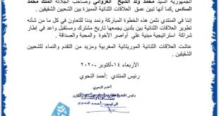 لقد تلقينا في المكتب التنفيذي للمنتدى المغربي الموريتاني للصداقة والتعاون بحفاوة بالغة خبر إنشاء فريق برلماني للصداقة الموريتانية لمغربية . إن هذا الخطوة تعكس عمق العلاقات الثنائية بين قائدي البلدين فخامة رئيس الجمهورية السيد محمد ولد الشيخ الغزواني وصاحب الجلالة الملك محمد السادس ,كما أنها تبين عمق العلاقات الثنائية المميزة …