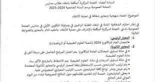 ألزم معالي وزير الصحة عبد الله ولد وديه اللجنة المكلفة بانتقاء ملفات طلاب مدارس الصحة العمومية باعتماد المعايير التي تضمن الشفافية. وأكد معالي الوزير في تعميم صادر عنه أن المعيار الأساسي في شبكة التنقيط هو اعتماد المعدل العام للباكلوريا 2024 شعبة العلوم الطبيعية أو الرياضيات. وشملت المعايير الثانوية اعتماد صاحب …