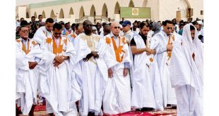 أدى رئيس الجمهورية، السيد محمد ولد الغزواني، صباح اليوم الإثنين، صلاة عيد الأضحى المبارك، بالساحة العامة الواقعة قبالة مسجد الولاية بمدينة لعيون.وأمّ جموع المصلين الفقيه صالح ولد سيدي ولد أعمر طالب، الذي أثنى في خطبتيه على المولى عز وجل، شاكرا نعمه على عباده، ومصليا على سيد الأولين والآخرين الذي بعث …