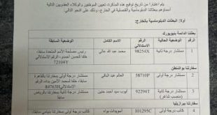 أكمل القراءة »الخارجية تجري تحويلات واسعة في أعضاء البعثات الديبلوماسية