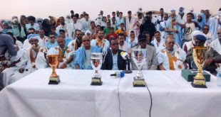 أشرف الوالي المساعد، السيد سيداتي ولد القطب، مساء اليوم الاثنين باكصير الطرشان في مقاطعة أطار، على اختتام فعاليات بطولة الرماية التقليدية للكيطنة، بمشاركة 50 فريقا على امتداد أربعة أيام. وقد فاز بالجائزة الأولى فريق العربان ب 24 اصابة، وحل في المرتبة الثانية فريق لسياد ب 20 اصابة، وحل في المرتبة …
