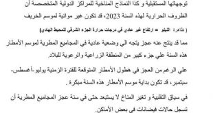 أكمل القراءة »الأرصاد تتوقع موسم أمطار مبكر مع أحتمال عجز في المجاميع المطرية