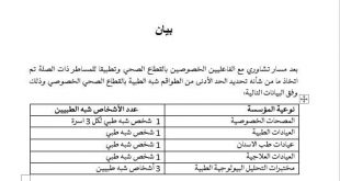أكمل القراءة »مقرر يحدد الحد الأدني من الطواقم شبه الطبية بالعيادات