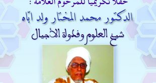 اعلنت وزارة الأوقاف والشؤون الاسلامية المغربية بالتعاون مع مؤسسة دار الحديث الحسنية، عن تنظيم حفل تكريمي للمرحوم العلامة محمد المختار ولد أباه، تحت عنوان “شيخ العلوم وقدوة الأجيال”. وسيقام الحفل يوم الخميس 22 رمضان 1444 هجرية، الموافق 13 إبريل 2023 ميلادية، على تمام الساعة ال12 زوالا في مؤسسة دار الحديث …