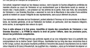 كشف الاتحاد الموريتاني لكرة القدم عبر صفحته الرسمية عن استياءه التام واعتراضه على ماوصفه التلميحات المبطنة من محلل قنوات canal+ عبر اللاعب الإيفواري السابق والمحلل لقنوات Canal+ وذلك بسبب مقطع فيديو متداول له بعد مباراة منتخب موريتانيا والكونغو في الجولة الرابعة من تصفيات أمم افريقيا حيث أشار أن الحكم قدمت …