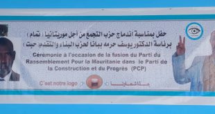 أعلن كل من حزب التجمع من اجل موريتانيا “تمام” وحزب البناء والتقدم “حبت” وحدتهما واندماجها في كيان حزبي موحد مؤكدين أن هذا الاندماج يأتي إيمانا منهما بوحدة الروابط الحزبية التي تجمعها والرسالة النبيلة التي يحملانها للوطن. رئيس حزب”تمام” الدكتور يوسف ولد حرمة ولد بابانا أكد في خطاب القاه أمام حفل …