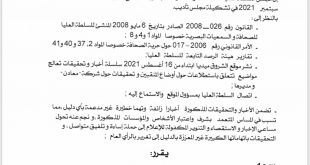 أصدر مجلس السلطة العليا للصحافة والسمعيات البصرية المجتمع اليوم الثلاثاء 28 سبتمبر 2021 في تشكيلة مجلس تأديب قرار يقضي بانذار موقع الشروق ميديا وتنزيله من المنصات لمدة 15 يوما . واشار القرار الى ان موقع الشروق ميديا نشر سلسلة اخبار و تحقيقات تعالج مواضيع تتعلق باستطلاعات حول اوضاع المنقبين و …