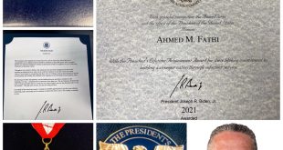 منح الرئيس الأمريكي جوزيف بايدن أحمد فتحي من نيويورك ، صحفي ومراسل الأمم المتحدة “جائزة الإنجاز علي مدار الحياة” Lifetime Achievement Awardعن جهوده في خدمة المجتمع والولايات المتحدة الامريكية. جائزة Lifetime Achievement هي جائزة وطنية مدنية يمنحها رئيس الولايات المتحدة الأمريكية ، وقد تم تأسيسها في عام 2003 بأمر تنفيذي …