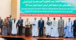 أشرف رئيس الجمهورية السيد محمد ولد الشيخ الغزواني، صباح اليوم الاثنين بالمركز الدولي للمؤتمرات “المختار ولد داداه”، على حفل توزيع جوائز شنقيط للعام 2025. وتتكوت الجائزة، التي منحت لأول مرة سنة 2001 من شهادة تقديرية ومنحة مالية قدرها خمسة ملايين أوقية قديمة لكل فرع من فروع الجائزة. وتمثل الجائزة آلية …