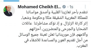 أعلن الرئيس محمد ولد الغزواني تعبئة موريتانيا جميع الوسائل من أجل تقديم العون والمساعدة للأشقاء في المغرب. وقال ولد الغزواني في تغريدة عبر حسابه على موقع (X) إن موريتانيا تشاطر عائلات الضحايا والجرحى والمتضررين، أحزانهم وآلامهم. وجدد ولد الغزواني عبر تغريدته التقدم بأحر التعازي القلبية وأصدق المواسات للمملكة المغربية الشقيقة …