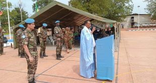 أقامت بعثة الأمم المتحدة لإحلال السلام بجمهورية وسط إفريقيا MINUSCA حفلا تأبينيا على روح فقيد الجيش الوطني، الرقيب إطول عمرو ولد أباه الذي وافاه الأجل المحتوم أثناء مشاركته في مهمة حفظ السلام بجمهورية وسط إفريقيا. وقد ترأست الحفل السيدة فالانتاين ريكوابيزا الممثلة الشخصية الدائمة للأمين العام للأمم المتحدة، ورئيسة بعثة …