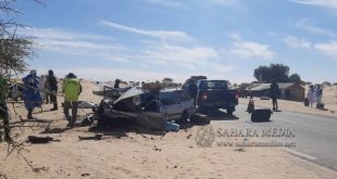 لقي شخصان مصرعهما، في حادث سير اليوم الثلاثاء، على الطريق الرابط بين العاصمة نواكشوط ومدينة روصو جنوبي البلاد. ووفق مراسل صحراء ميديا، فإن السيارة التي انقلبت عدة مرات، كانت تقل ثلاثة أشخاص؛ رجل وامرأتان، نجت إحداهما دون إصابة. ونقلا عن شهود عيان كانوا قرب مكان وقوع الحادث، فإن سائق السيارة …
