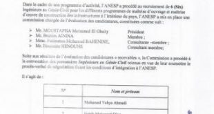 أكمل القراءة »الوكالة الوطنية لتنفيذ ومتابعة المشاريع”ANESP” تعلن نتائج عملية انتقاء مهندسين وفنيين