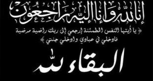 (كُلُّ نَفْسٍ ذَآئِقَةُ الْمَوْتِ وَإِنَّمَا تُوَفَّوْنَ أُجُورَكُمْ يَوْمَ الْقِيَامَةِ فَمَن زُحْزِحَ عَنِ النَّارِ وَأُدْخِلَ الْجَنَّةَ فَقَدْ فَازَ وَما الْحَيَاةُ الدُّنْيَا إِلاَّ مَتَاعُ الْغُرُورِ ) ..صدق الله العظیم . علمنا في وكالة المرابع ميديا فجر الیوم الخميس الموافق 06/ 05 / 2021 … وبنفوس يغشاها الألم والأسى وقلوب يعتصرها الحزن، مع …