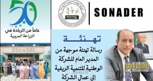 وجه المدير العام للشركة الوطنية للتنمية الريفية “صونادير” السيد حماده ولد ديدي ولد سيد أحمد ، التهاني الصادقة والتبريكات، لعمال الشركة على نجاح الجهود الكبيرة التي بذلوها خلال زيارة رئيس الجمهورية السيد محمد ولد الشيخ الغزواني لولاية الترارزة، الخميس 23 أكتوبر 2025. وجاء في الرسالة، التي حصلت “المرابع” على نسخة …