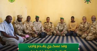 أدى وفد عسكري يقوده العقيد محمد عبد الله محمد مولود، باسم اللواء قائد الاركان العامة للجيوش، زيارة تعزية ومواساة لآسرة الرقيب أول محمد آسكره بلال، الذي وافاه الاجل المحتوم بانواكشوط.حضر الزيارة العقيد البحري محمدو عبد الرحمن قائد الاركان البحرية المساعد، وعدد من صباط وضباط صف الأركان البحرية والشؤون الاجتماعية.وفي ختام …
