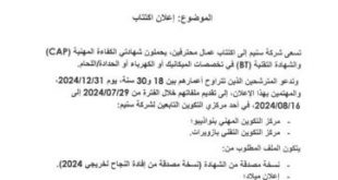 أكمل القراءة »سنيم تعلن عن مسابقة لاكتتاب عمال حرفيين”شروط المسابقة”