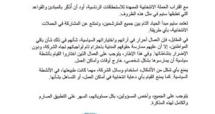 طالب النائب السابق لمقاطعة أكجوجت د.محمد الامام ولد أبنه ساكنة ولاية انشيري بالتصويت بكثرة للرئيس محمد ولد الشيخ الغزواني بوصفة المرشح الآمن للبلد وهو الوحيد الذي يضمن للموريتانيين علي مختلف طوائفهم مزيدا من الرقي والتقدم والدفع بعجلة التنمية للأمام واستمرارا لنهجه وتكميلا لحصيلته المشرفة، ويعتبر التصويت لغيره لايخدم مصلحة واستقرار …