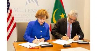 وقع معالي وزير الاقتصاد والمالية السيد سيد أحمد ولد ابُّوه، الثلاثاء في واشنطن بالولايات المتحدة الأمريكية، مع الرئيسة التنفيذية لمؤسسة تحدي الألفية الأمريكية، السيدة آليسا أولبرايت، على أول اتفاق تمويل بين بلادنا وهذه المؤسسة الفيدرالية. ويتعلق الاتفاق بتمويل على شكل هبة ضمن مكونة برنامج العتبة بمقدار 27 مليون دولار أمريكي …
