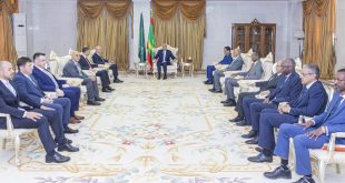 التقى الرئيس محمد ولد الشيخ الغزواني، اليوم الاثنين بالقصر الرئاسي في انواكشوط، وفدا من مجموعة شركات “طاقة عربية”، برئاسة خالد أبوبكر، رئيس مجلس إدارة المجموعة التي يوجد مقرها العام بجمهورية مصر العربية الشقيقة. وقد تمحور اللقاء حول مجالات وآفاق التعاون بين بلادنا ومجموعة “طاقة عربية”، وسبل تعزيزها، خدمة للتنمية الاقتصادية …