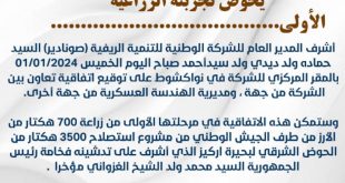 أشرف المدير العام للشركة الوطنية للتنمية الريفية (صونادير) السيد حماده ولد ديدي ولد سيد أحمد الخميس 01/01/2024 بالمقر المركزي للشركة في نواكشوط على توقيع اتفاقية تعاون بين الشركة من جهة ، ومديرية الهندسة العسكرية من جهة أخرى. وستمكن هذه الاتفاقية في مرحلتها الأولى من زراعة 700 هكتار من الأرز من …